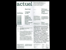 “Actuel” digitally reconstructs an abandonned typeface, found in one of England’s most distinguished typefoundries specimen, Stephenson, Blake and Co. The original was designed by a British type designer named Sir William Kirkwood. He punchcut Athenian (1889), Antiques Nos. 1,2,3,4 (1904), Booklet Italic (1904, design / Elisha Pechey) and the famous Windsor (1905, design / Elisha Pechey).